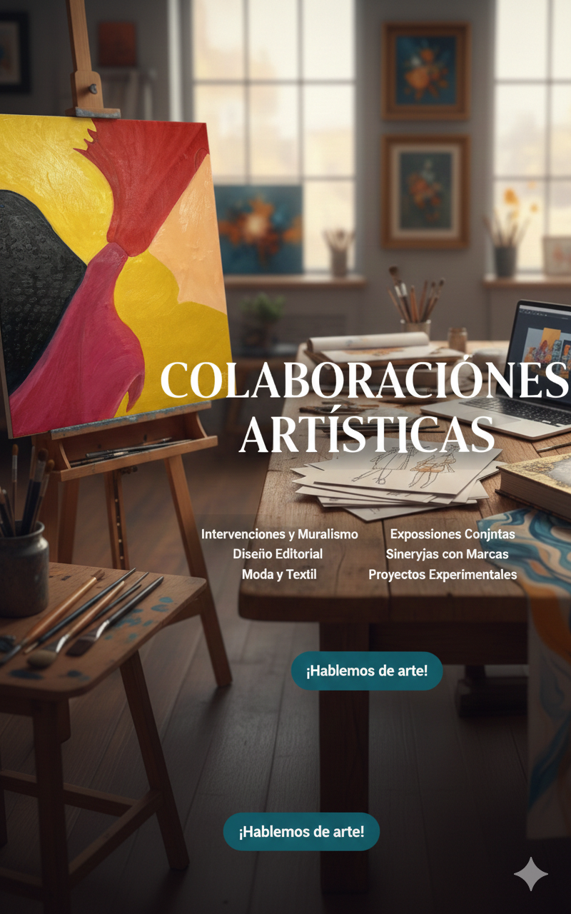 "La exploración y el diálogo creativo son pilares fundamentales de mi trabajo. Estoy abierto a propuestas de colaboración con otros artistas, instituciones o marcas que busquen aportar una visión estética única. Si crees que mi trabajo puede complementar tu proyecto, no dudes en contactarme para crear algo extraordinario juntos."